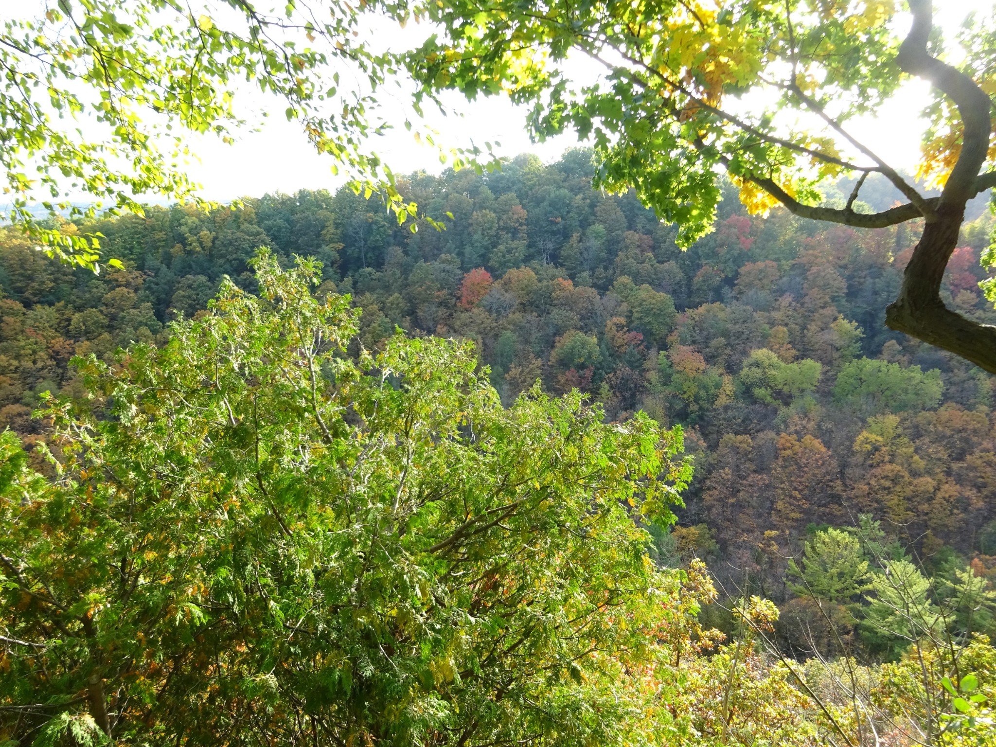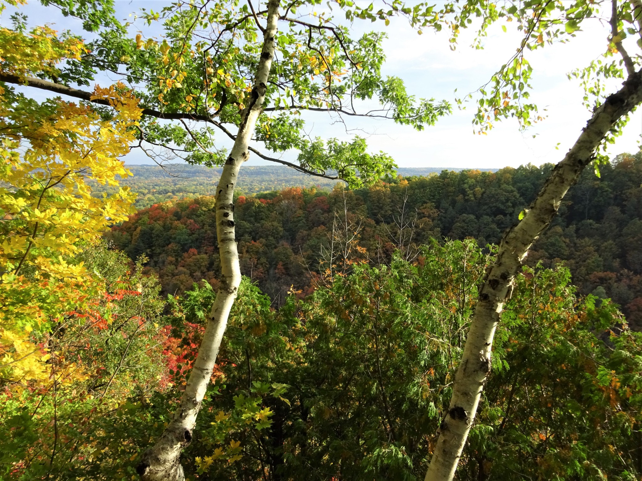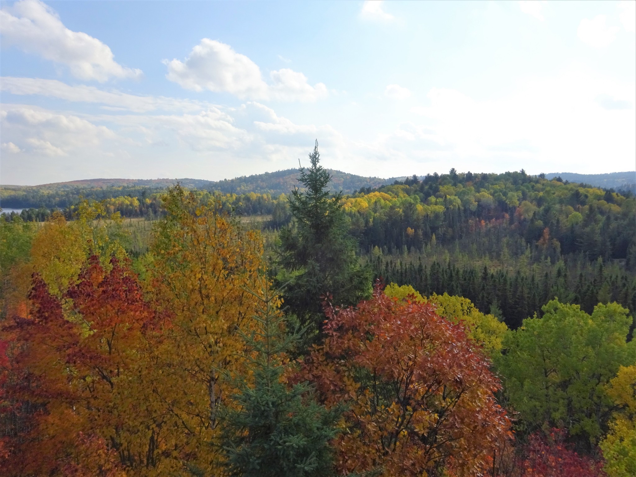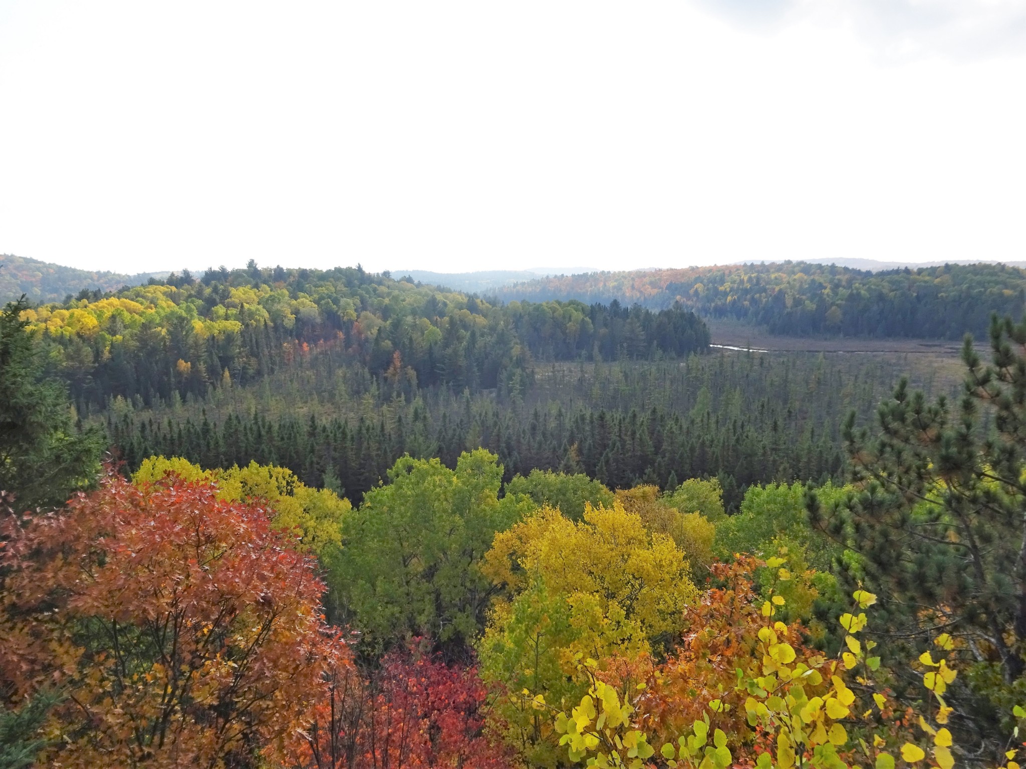 阿岗昆公园里的步道很多, 最有名的要算Lookout Trail。Lookout Trail是一条2.1公里的环形路径,有的地方介绍这个步道相当陡峭,其实还好啦。步道走到最高点时,可以欣赏数百平方公里的阿冈昆的壮丽景色。走一个来回,正好欣赏秋天的红叶。