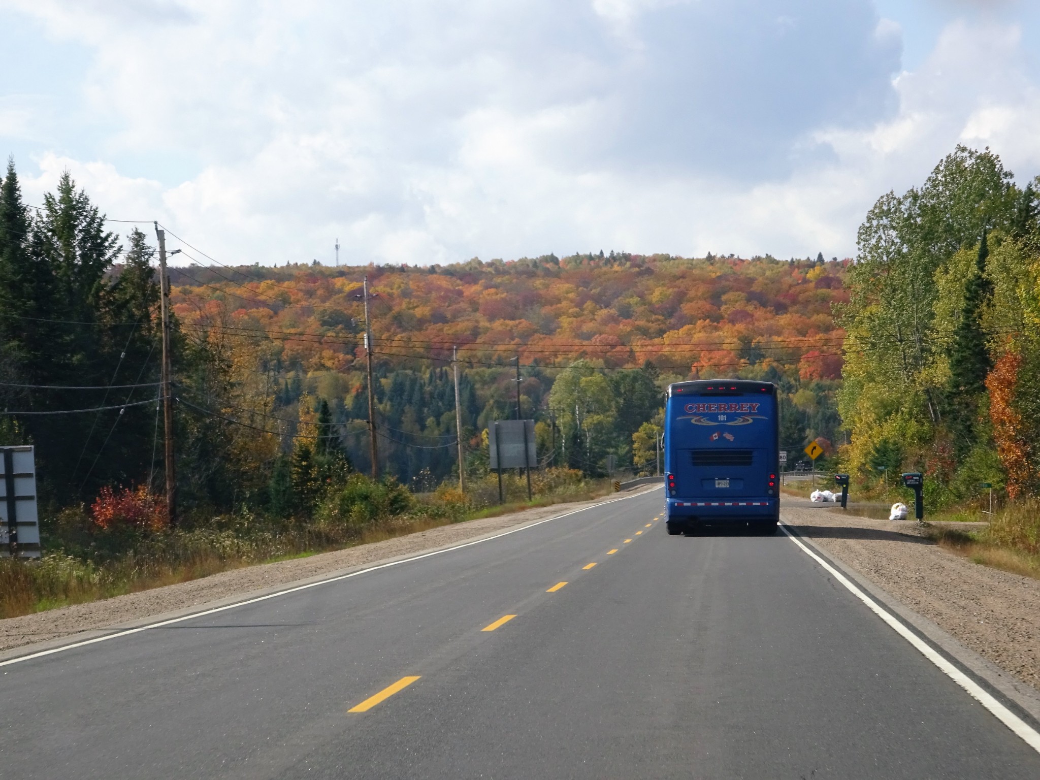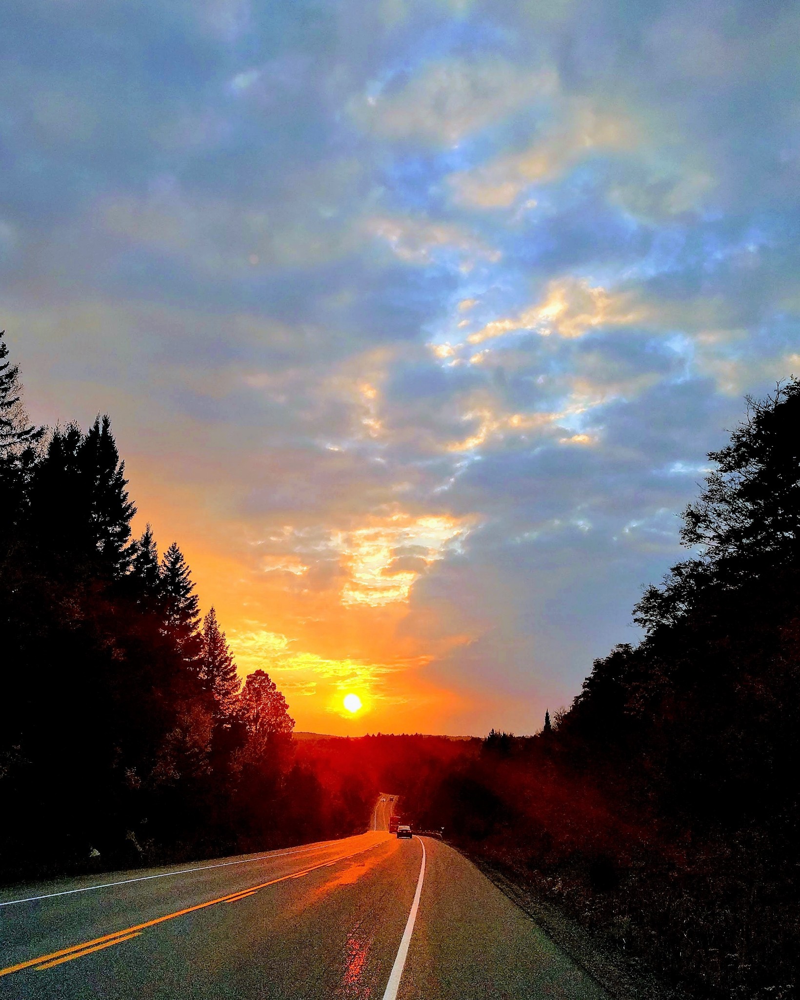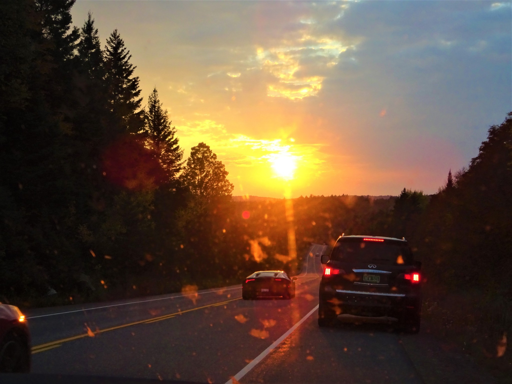 准备离开阿岗昆公园时正赶上落日, 赶紧停靠路边拍两张照片。然后就赶往当晚的住宿地Huntsville。