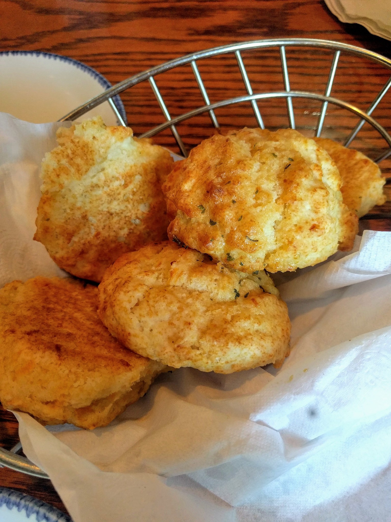 可能我们太饿了, 很快就把烤饼吃完了, 服务员特别的好, 问我们还要一些吗? 我们说当然好了,服务员很高兴地又去拿了一份给我们,还安慰我们说, 因为特别好吃许多人要双份的。其实我想告诉他, 别的不点了, 就要一筐这个。