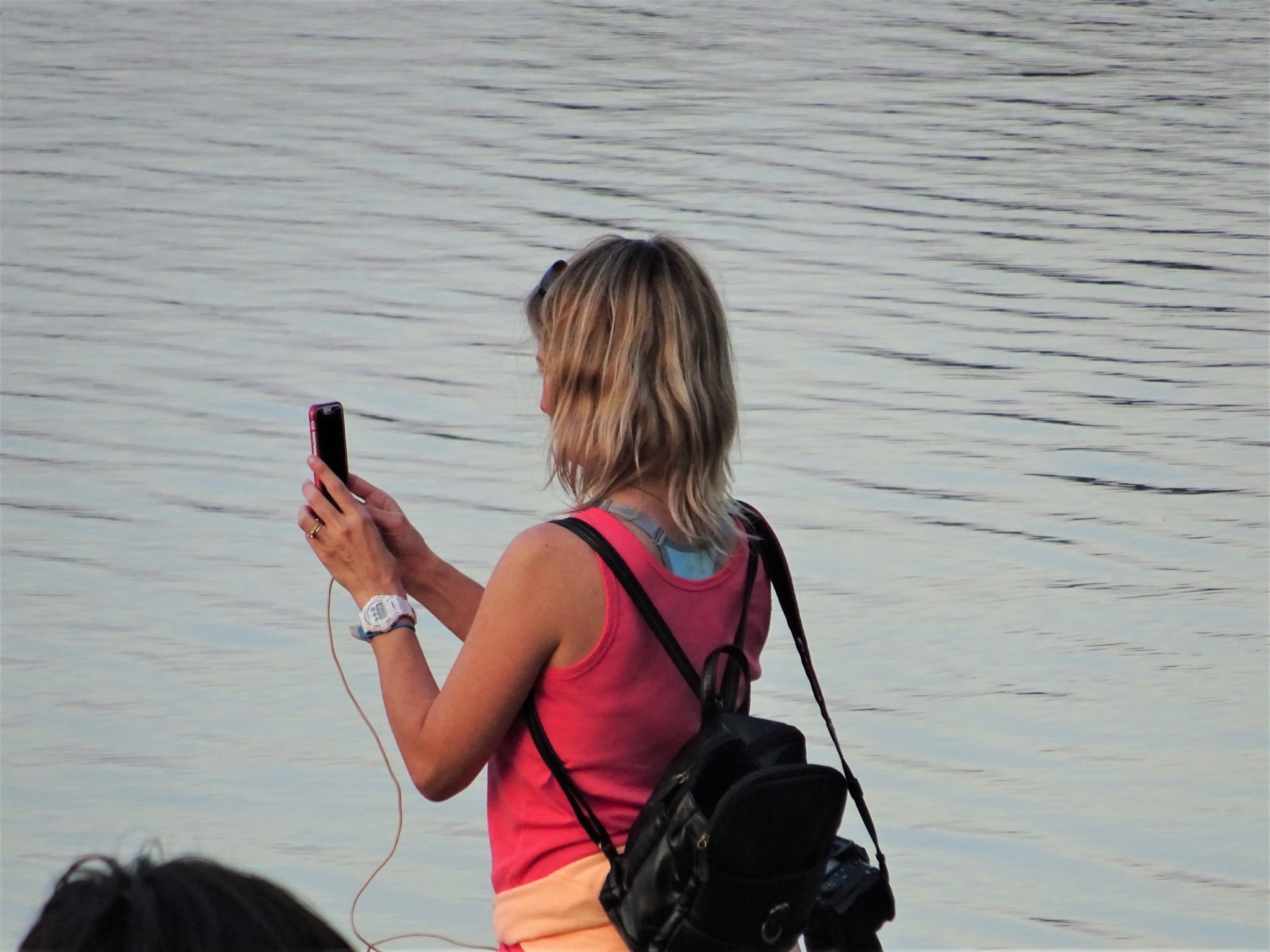 湖边景色不错,还有个细沙滩。天色将晚,游客寥寥无几, 静谧 平和 。