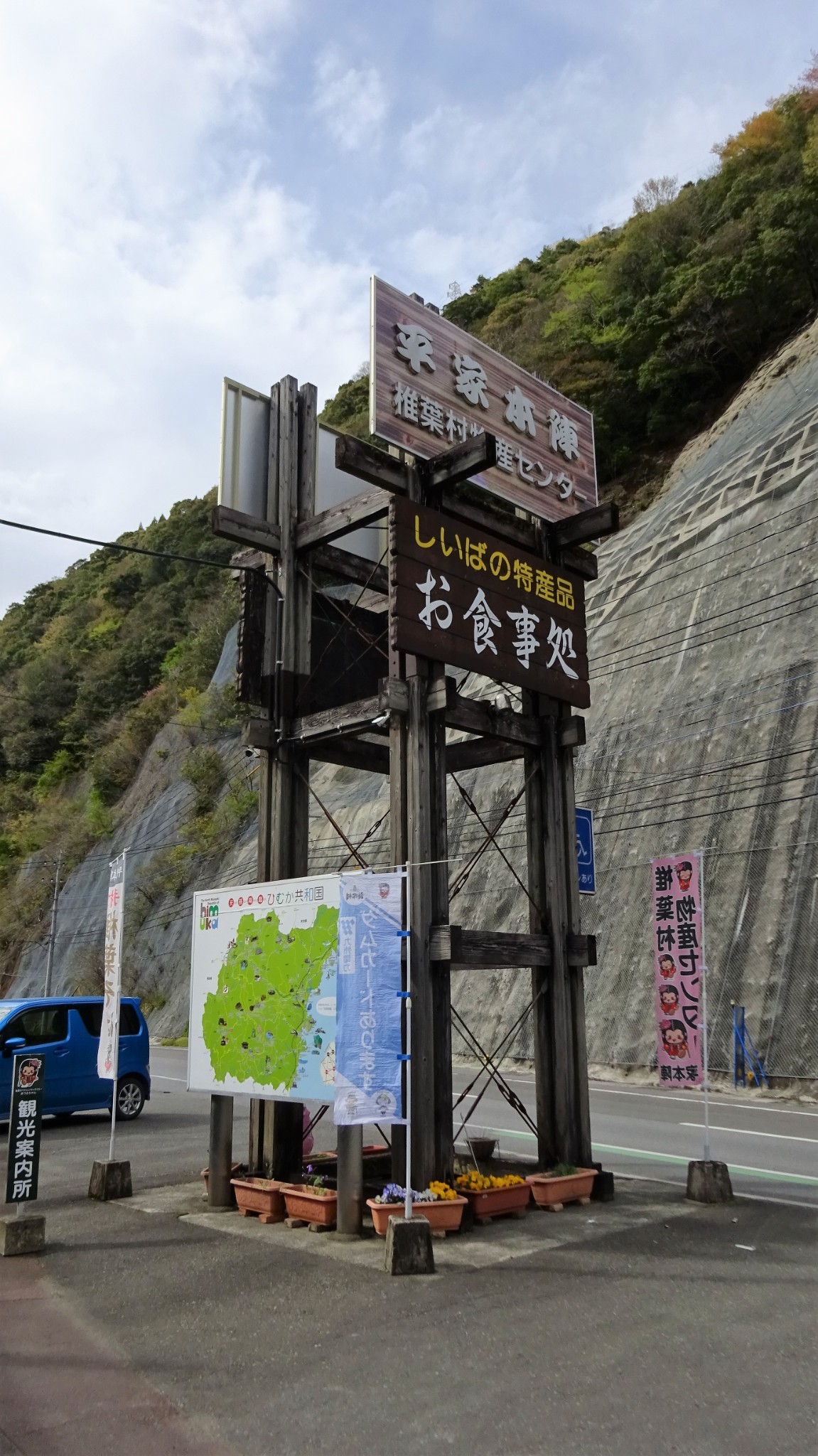 是一个小型的山区村庄,位于南部 九州 岛的中心。 它位于 宫崎 县的 西北 部,与 熊本 县接壤。被誉为 日本 三大秘境之一。一路过去265国道实在是太严酷了, 绝大部分都是来回共享一个车道,交汇车时有一定危险性。一路上风景不错,但碍于道路情况不好, 不能停下拍照,只能眼睛看看啦。
