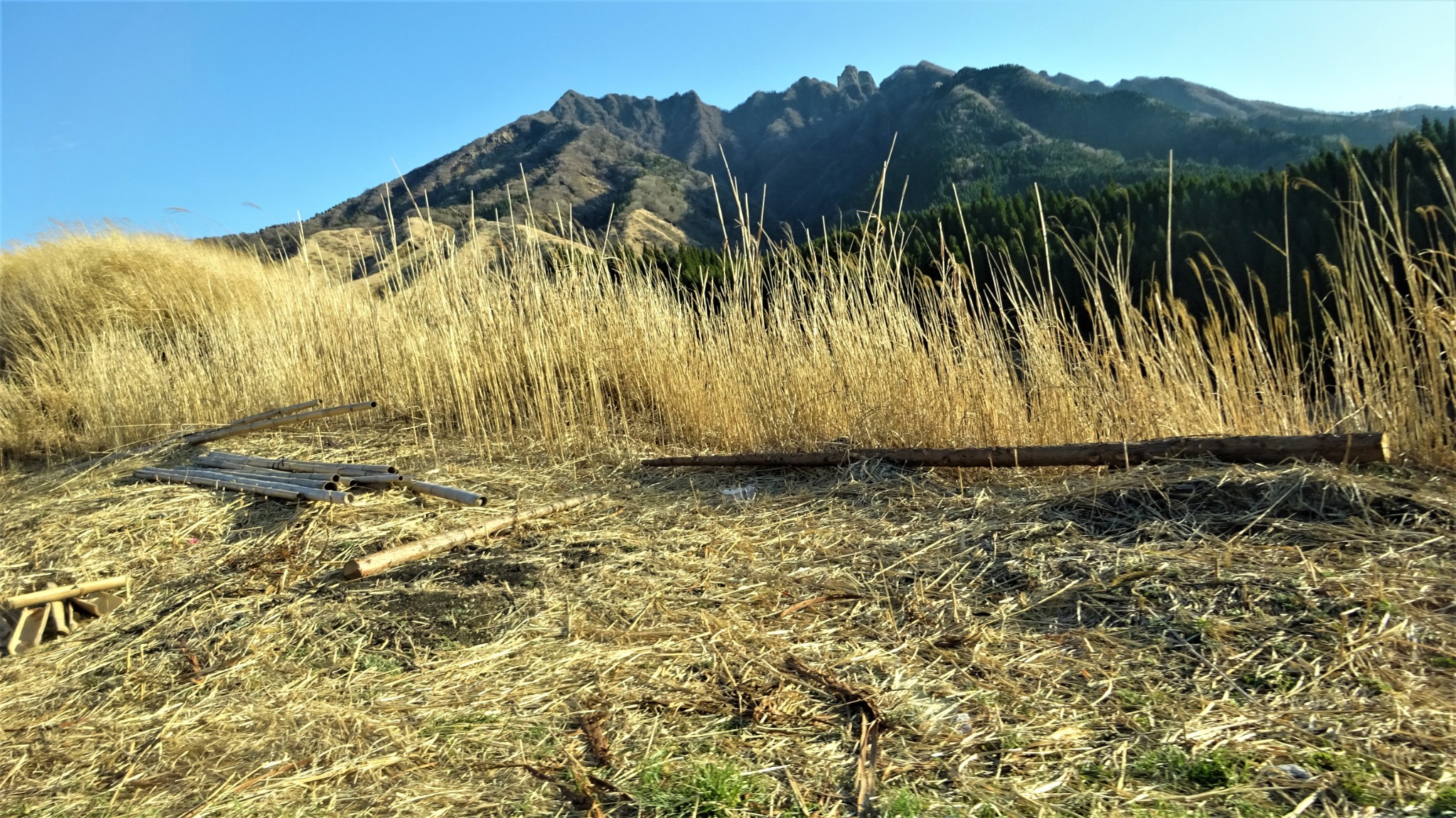 很奇怪, 靠近阿苏山有段地方的山坡上都是枯黄的草。