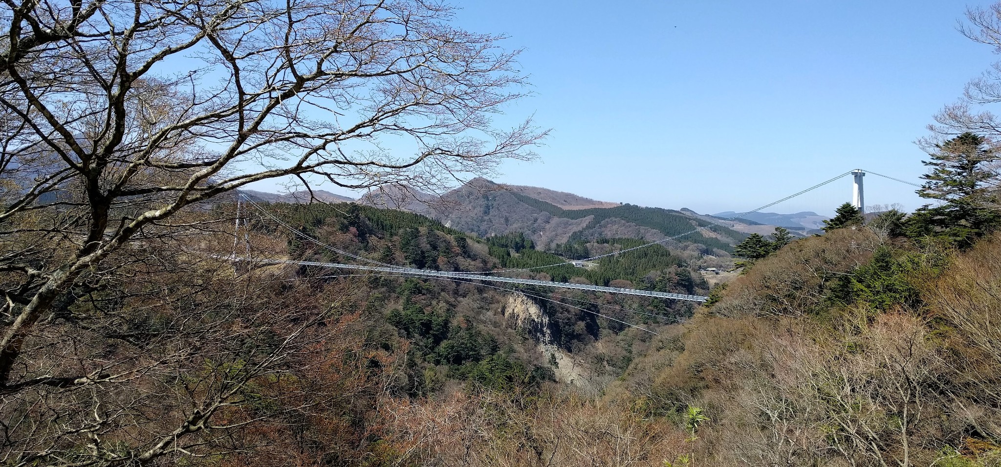 翻过由布岳后就到了鹤见岳,鹤见岳是大分县 别府市 一座活火山,海拔1,375米。别府温泉就在山脚东侧。春天大约有2000棵樱花树在山脚下绽放,从观景台和索道上俯瞰的樱花景色极佳。沿着鹤见岳山脚下的县道也是一路樱花。