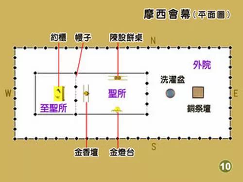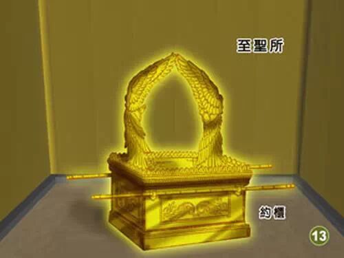 至圣所长宽相等,是个正方形。此外,它的高度和长宽也相同,至圣所就像新耶路撒冷(启21:16)一样,是个完全的立方体。这里只有一件器具。