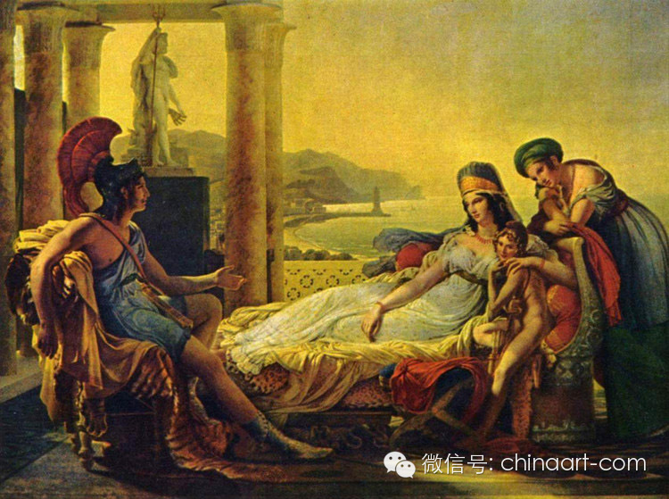 【小编有话】特洛伊战争中,特洛伊的主帅赫克托尔(Hector)被希腊联军的第一勇士阿喀琉斯(Achilles)杀死后,他的父亲,特洛伊国王普里阿摩斯(Priam),夜里找到阿喀琉斯,请求归还儿子的尸体。阿喀琉斯同意了。普里阿摩斯把赫克托尔的尸体带回到特洛伊城里以后,王妃安德洛玛刻(Andromache )坐在丈夫的尸体前,怀里是他们的儿子阿斯蒂亚纳斯克(Astyanax):这个孩子在特洛伊城失陷后,被阿喀琉斯的儿子尼奥普托列墨斯(Neoptolemus)丢下城墙摔死了。