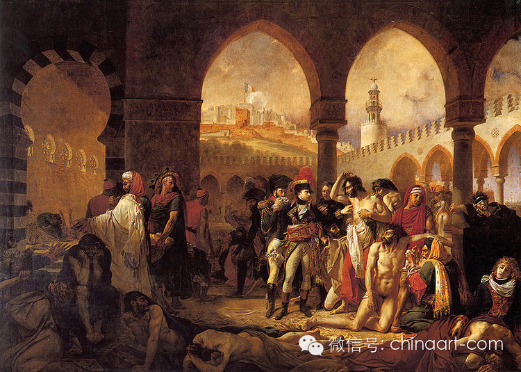 《波拿巴视察Jaffa的隔离病院》(Bonaparte Visiting the Pesthouse in Jaffa),作者Antoine-Jean Gros。