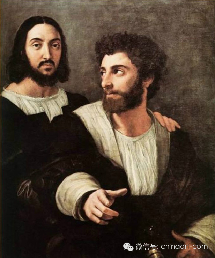 《 拉斐尔及其友人》画面左边为拉斐尔本人,1518年卢浮宫藏