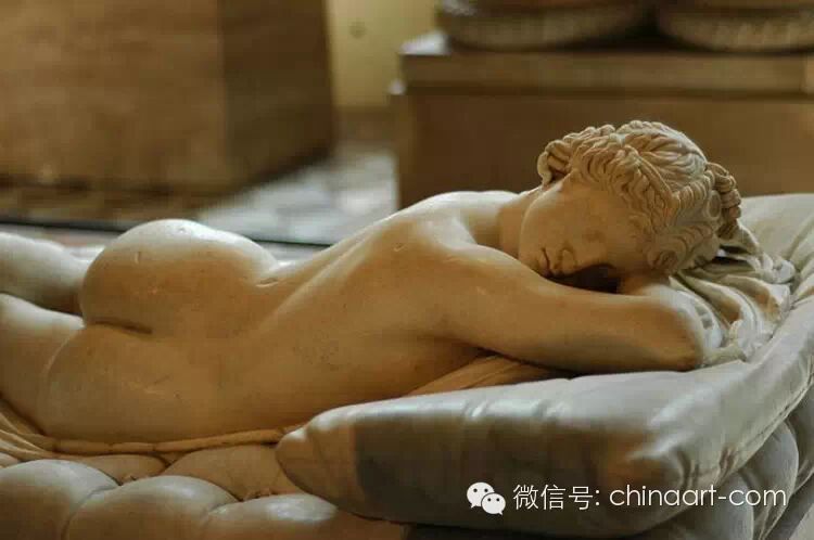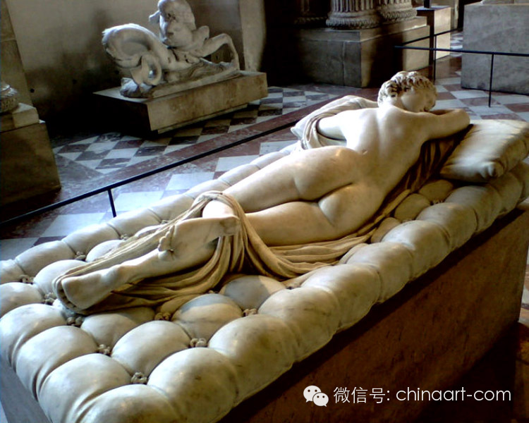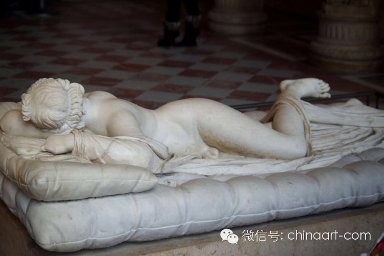 《睡眠中的厄马弗蒂(沙发垫上的两性人)》公元前2世纪的希腊雕塑的罗马复制品,作于2世纪。这件作品中的豪华的床垫是1619年意大利雕塑家贝尔尼尼的作品。
