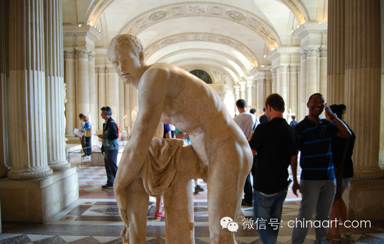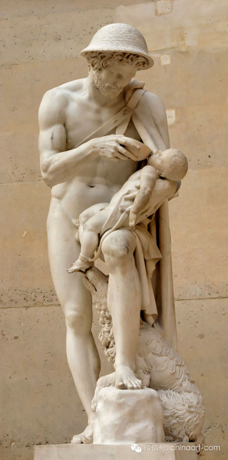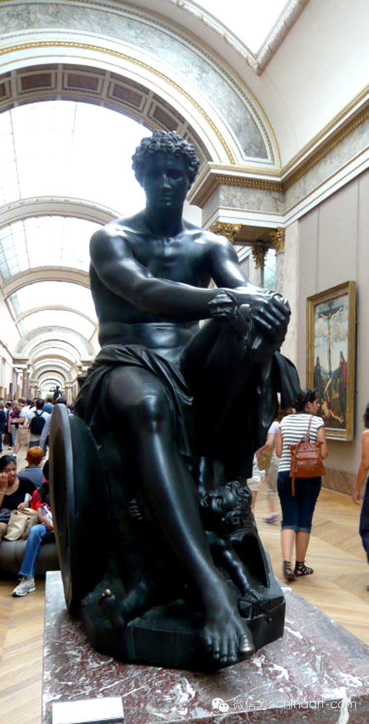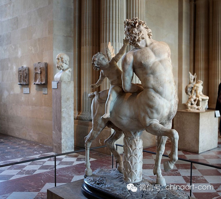 【小 编有话】在提沃利(Tivoli)的哈德良庄园(Hadrian's Villa)里,人们发现了与这件作品同样的一件雕塑,用灰黑色的大理石雕刻而成,此外还发现了同样质地的灰黑色大理石制作的另外一件雕塑:《年轻的半人 马嘲笑受伤的爱洛斯》(Young Centaur laughing at Eros's wounds)。这一对雕塑,现在Capitoline Museums 博物馆展出。因此,人们估计卢浮宫的这件作品,本来也是一对雕塑之一,但是不知道另外一件雕塑在哪里。