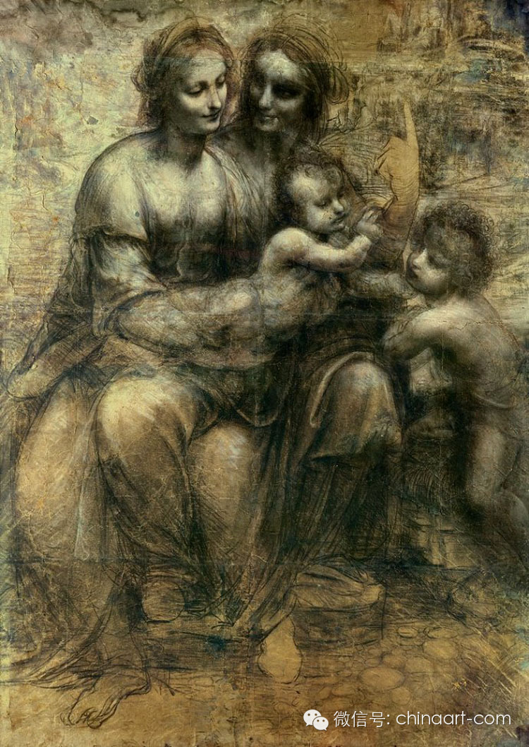 但凡与圣母圣子有关的油画作品中,经常伴随着出现约翰的身影,就像是耶稣的童年伴侣,他的年龄通常要比耶稣稍大一些。比如上面这张达芬奇的速写画中就是。
