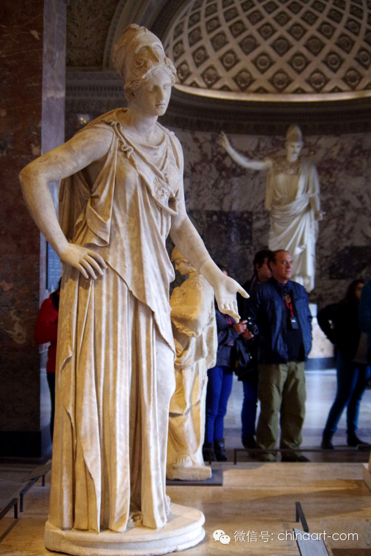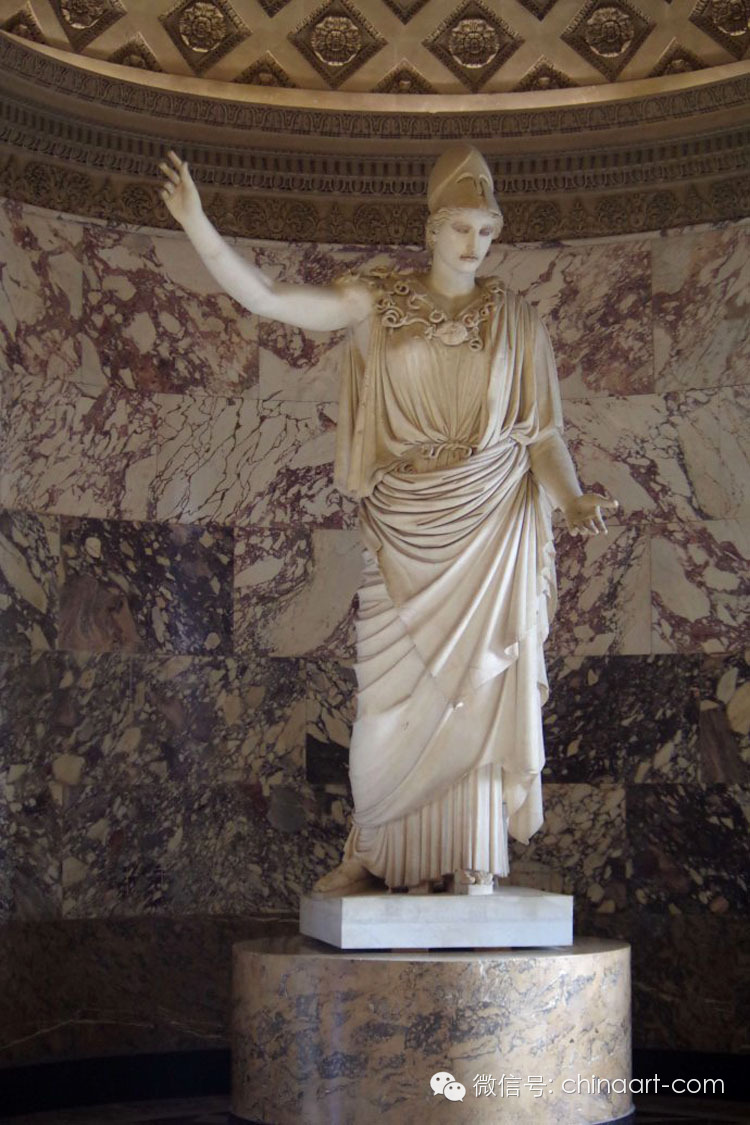 【小编有话】《马太的雅典娜》(Mattei Athena),作者可能是希腊雕塑家Cephisodotos或Euphranor,作于公元前4世纪的雅典比雷埃夫斯港口(Piraeus),这件公元1 世纪的罗马复制品高度2.30米。公元前4世纪希腊雕塑作品,人物的表情,肌肤和衣服的质感表现得真好啊,2400年前的作品,不能不让人感叹其精致完美。