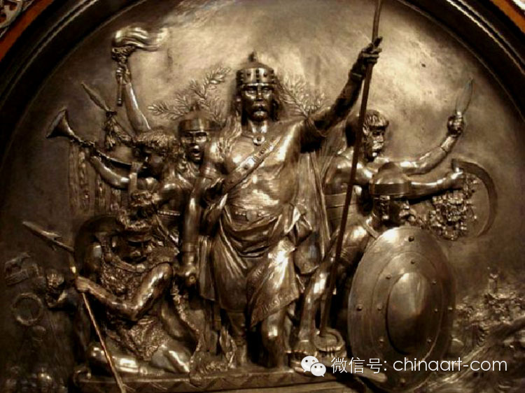 浮雕《墨洛温国王的胜利》(Victoryof King Merovech),暗喻法国人在公元451 年对传说中的匈人(Hun)国王阿提拉(451)的胜利。