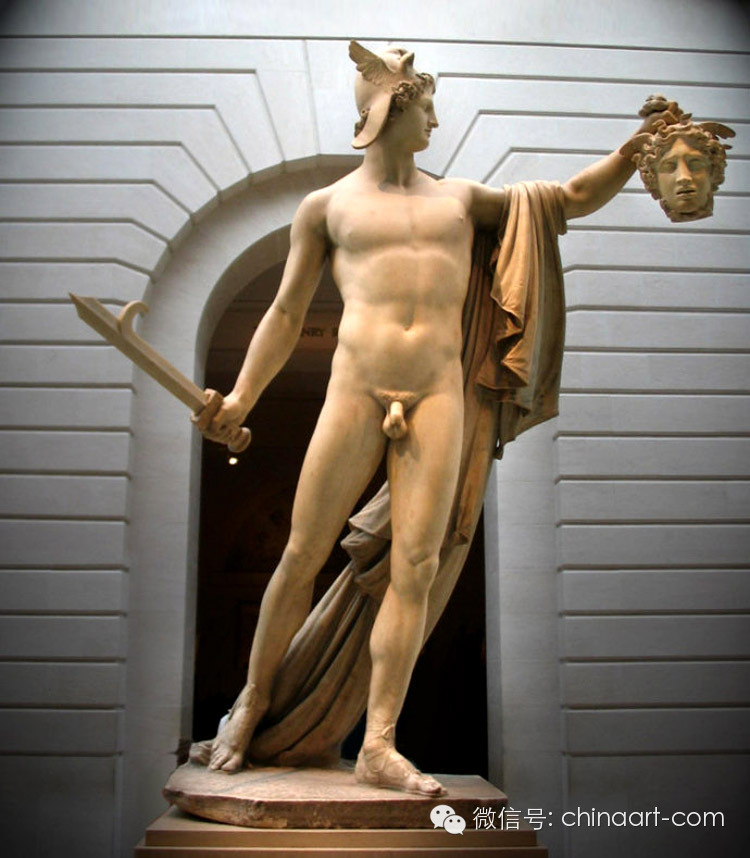 《帕修斯杀死了女妖美杜莎》(Perseus),又译作帕尔修斯,希腊神话中的英雄,宙斯的儿子。他建立了很多功业,包括杀死了女妖美杜莎等,他是雅典城的创立者。作者卡诺瓦(意大利)(Antonio Canova,1757-1822)
