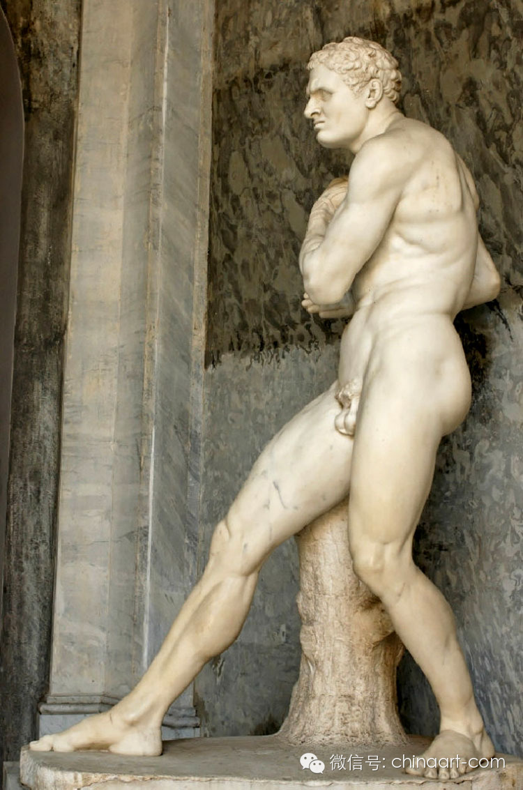 【小编有话】包 杰斯斗士是一件原尺寸的希腊风格大理石雕塑,表现了一名挥剑的人,创作于公元前100年的以弗所。并被阿加西亚斯,多西休斯之子至于一个底座之上。早在 1611年之前,在Nettuno,古老的Antium地区,尼禄一处海边寝宫的遗址中,雕塑就已经在那了,从人体的姿势上可以清楚的看出来,这雕塑所表 现的并不是一名角斗士,而是一名正在与骑马的作战的战士。据Friedrich Thiersch推测,这更像是表现阿西里斯正在于骑马的亚马逊人作战。雕塑在罗马被波各塞家族纳为自己的藏品之一。放在波各塞公园专门为它为命名的房间 一楼,在18世纪80年代初期,由AntonioAsprucci 重新装饰过。在1807年被CamilloBorghese卖给了拿破仑。当波各塞藏品被卢浮宫接管后,雕塑也被移到巴黎,并直至现在。