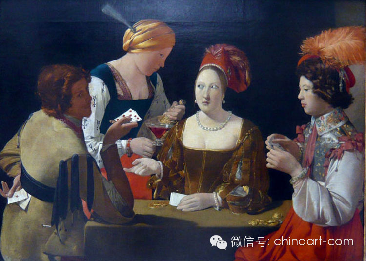 【小编有话】这幅作品,反映当时人们的世俗生活,画中左面的男子正在作弊,画作描绘出每个人的表情和心态。