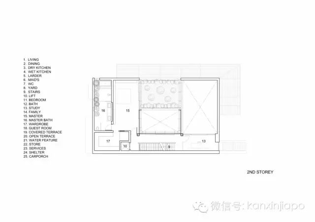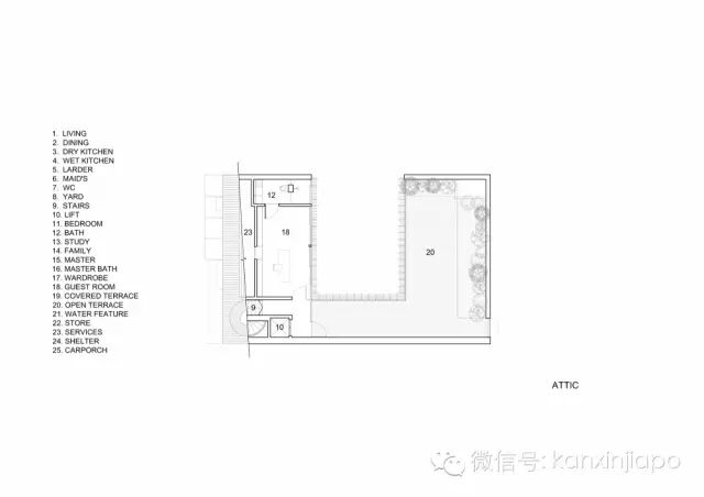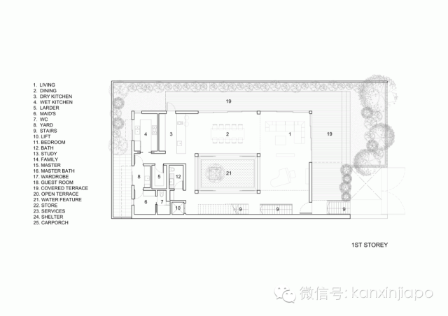 庭院给予了住宅更多的私密性,同时也使得阳光可以射入中央的房间。此外也起到了充当隔离远处主干道噪音的缓冲区的作用 。