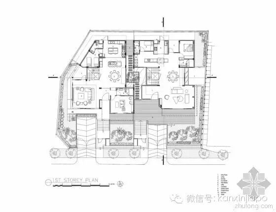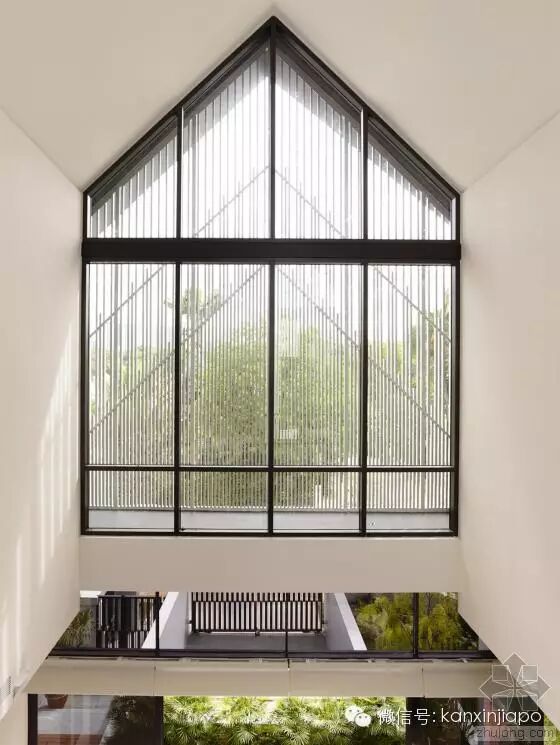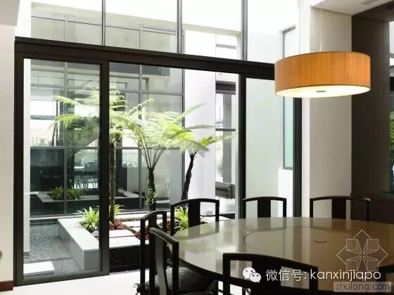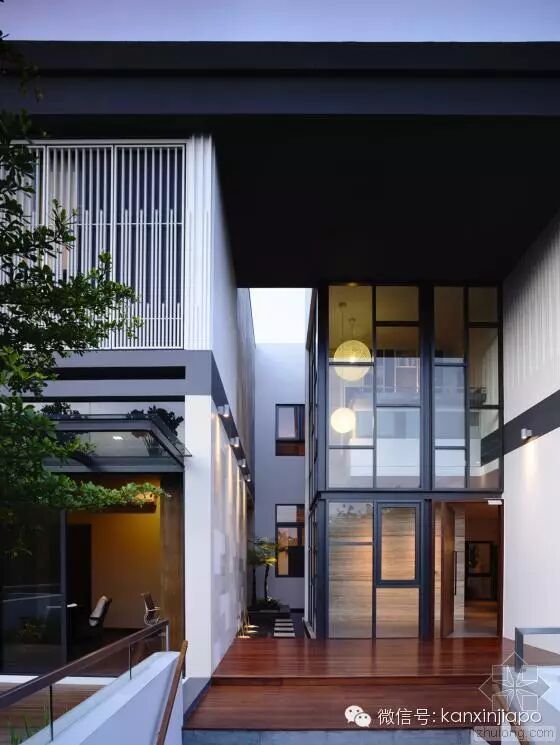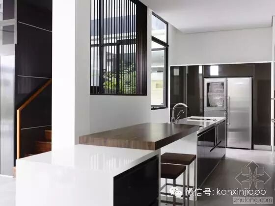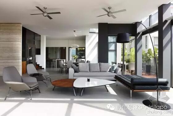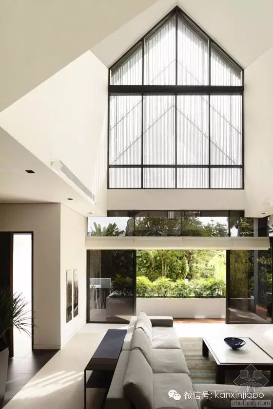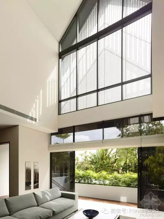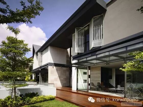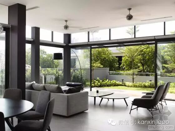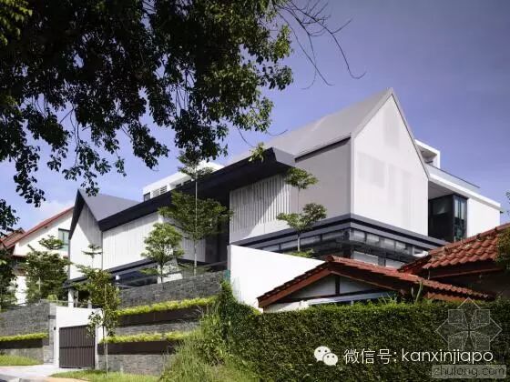 建 筑师发现,原来的建筑的特色在于其双坡屋顶形式,以及如同坐落在花园中的明亮而开放的空间。因此在新的设计中,建筑师保留了原来的屋顶形式。为了让别墅被花 园围绕,同时让自然通风和光纤尽可能进入两栋别墅,建筑师在两个别墅中间设计了一个中央庭院和水景设计。这个空间同样有助家庭的沟通和交流。墙上的特定位 置设以开口,以保持空间之间的视觉联系,同时保护隐私。