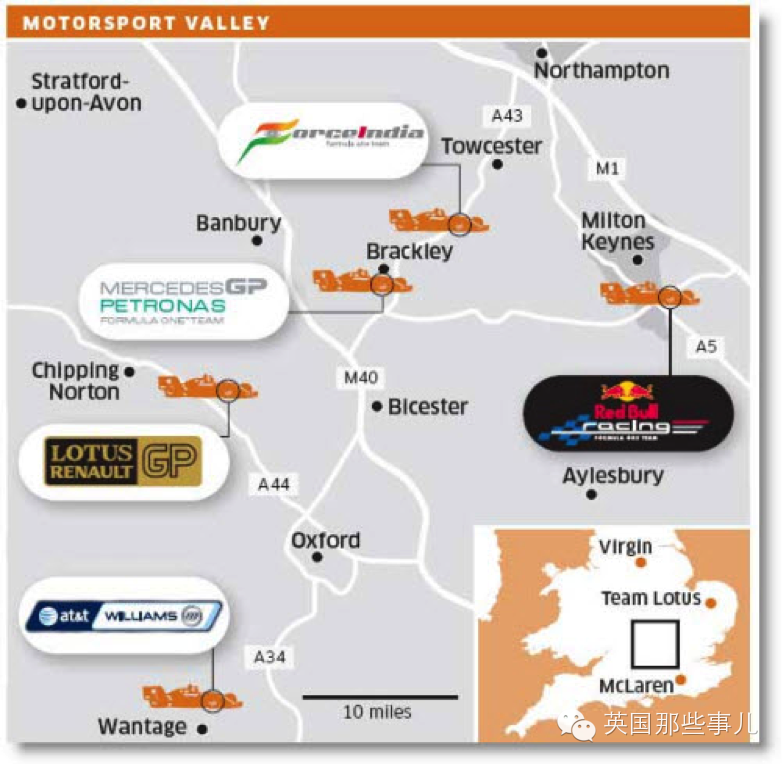 全世界12支F1车队里,一半以上把总部设在了银石赛道周边,于是与赛车产业相关的企业统统在附近驻扎,这一区域俨然成为了赛车界的“硅谷”,赛车谷由此得名。沿着赛车谷绕一圈,你几乎就把F1顶级车队膜拜全了——红牛、迈凯伦、威廉姆斯、梅赛德斯、莲花等等,唯一可惜的是车队总部属于极为机密的地点,一般人儿进不去,只能在门口眼馋下了。