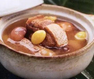 功效:中医认为秋日宜多饮用白果煲的汤水,因其有敛肺气,定咳喘的作用,有降低血清胆固醇,扩张冠状动脉的作用,对冠心病,高血压,动脉硬化有一定治疗作用,还可肺结核、气管炎、赤白带下,遗尿等,配伍枝竹冬瓜煲老鸭润肺气,养阴气。
