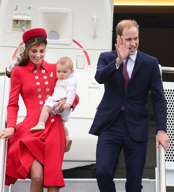 ▼(左图)凯特王妃与威廉王子一同到新西兰访问,佩戴Gina Foster帽饰、身穿皇室御用品牌Catherine Walker红色双排扣军装大衣出席官方欢迎仪式。