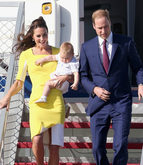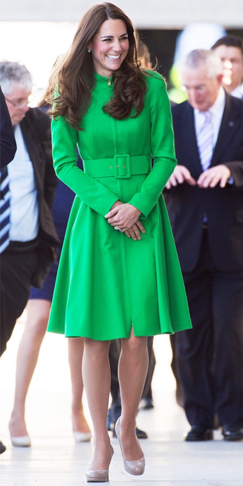 ▼ 凯特王妃抵达澳大利亚首都堪培拉,身穿Catherine Walker祖母绿外套裙和L.K. Bennett高跟鞋。