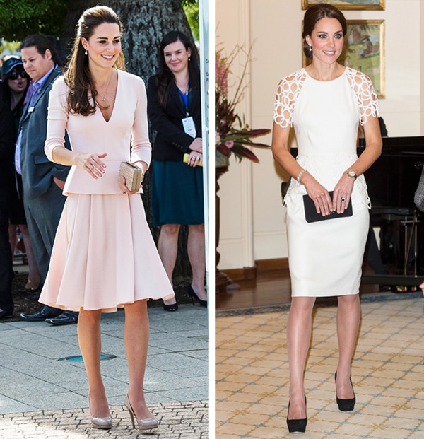 (右图)澳洲行的最后一晚,凯特王妃身穿美国设计师Lela Rose的白色连衣裙,搭配简单的黑色麂皮高跟鞋,既落落大方,又有精致细节。