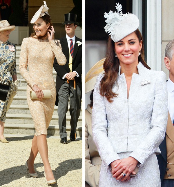 ▼(左图)在白金汉宫举行的第二次花园茶会上,凯特王妃穿着Alexander McQueen裸色蕾丝连衣裙,配Gina Foster帽饰、Russell & Bromley手包及裸色高跟鞋。