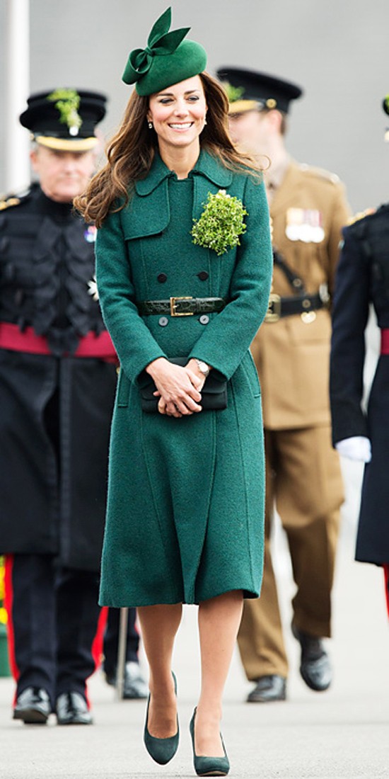 ▼ 凯特王妃身穿Hobbs London绿色外套,佩戴卡地亚三叶草胸针,以从头到脚一身绿来庆祝爱尔兰年度最盛大的节日——圣派翠克节 (St.Patrick's Day)。
