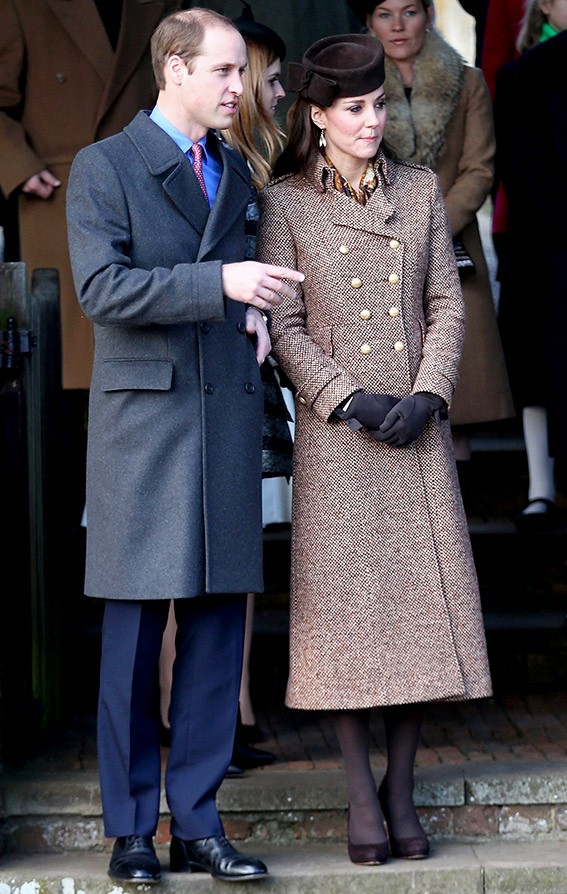 ▼在英国桑德林汉姆庄园,威廉王子携凯特王妃参加圣诞结礼拜活动,她身穿一件到小腿处的粗花呢棕色大衣,配以同色系的帽饰和高跟鞋,端庄而沉稳。