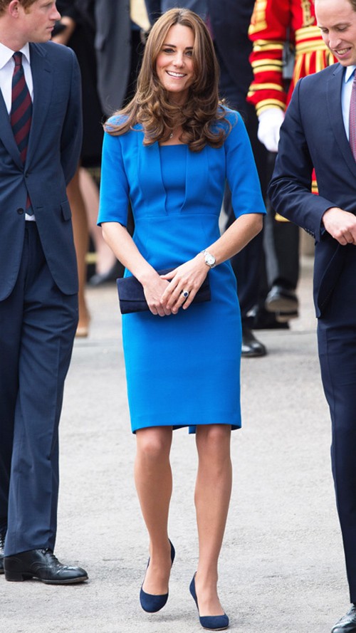 ▼凯特王妃选择L.K. Bennett皇家蓝紧身连衣裙,出席一战纪念活动,彰显出其皇室优雅气质。