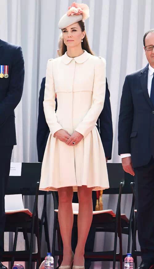 ▼凯特王妃出席第一次世界大战100周年纪念活动,以一身Alexander McQueen的时尚外套裙亮相,搭配Jane Taylor象牙色与珊瑚色的帽饰,以及她常穿的L.K. Bennett裸色高跟鞋。