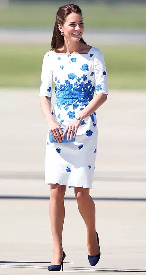 ▼ 凯特王妃造访澳大利亚安伯利空军基地,身穿L.K. Bennett罂粟花图案连衣裙和Alexander McQueen海军蓝高跟鞋。