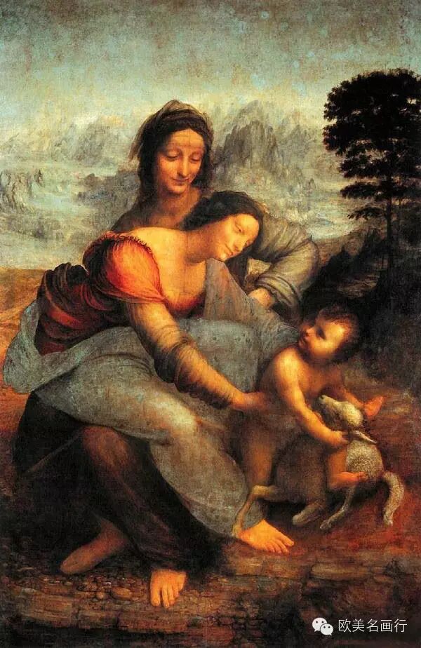 8、圣母子与圣安娜 达芬奇 意大利 木板油彩画 1512年 168x130cm 巴黎卢浮宫藏