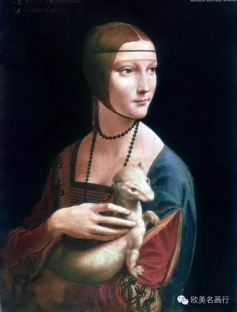 4、抱貂女郎 达芬奇 意大利 木板油画 1485-1490年 54×39厘米 现藏于波兰克拉科夫恰尔托雷斯基博物馆