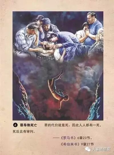 由于人类的始祖犯罪违背神的圣约,死亡就临到众人。因着罪,人与神隔绝;因着罪,人的身体要死亡;因着罪,人的灵魂要在地狱不灭的火中永远受痛苦,受刑罚。是罪将人一步一步引向最终的灭亡,罪是何等的可怕!我们人人都惧怕死亡,避讳提这个“死”字,但我们人人都喜欢犯罪,更喜欢享受罪中之乐。岂不知充满诱惑的罪,竟是死亡的毒钩,为要将我们一步一步引进地狱之火吗? 趁着今天还活着,让我们赶快向赦罪之主——神的儿子耶稣,认罪悔改,离开罪恶,以逃脱地狱之火永远的灭亡。