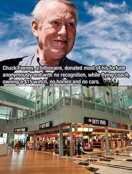 上世纪90年代中期,费尼预感到免税店的利润上升空间正在缩水,于是决定离开DFS。1997年,法国奢侈品巨头伯纳德•阿诺尔特用35亿美元将DFS收购。如此大宗的收购案必须披露相关信息,费尼不能再隐瞒下去,公众这才知道他的股份早就转到大西洋慈善基金名下了。费尼因此获得极大关注,并收获了两个“粉丝”——比尔•盖茨和沃伦•巴菲特。受到费尼的启发,他们也先后表示要“裸捐”。(注:97年到现在,收购款还有增值……所以他后来的财富远远超出这个数字)