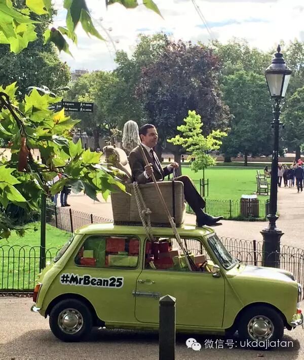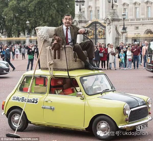 而昨天为了庆祝《Mr. Bean》25周年,风趣的憨豆先生坐着自己的爱车,带着自己的爱宠去了白金汉宫游玩。