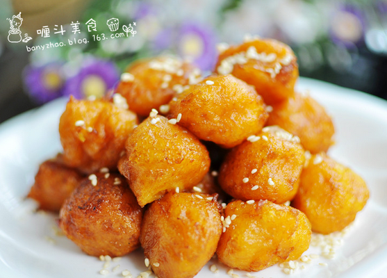 红薯 1000克、糯米粉 250克、白糖 适量、芝麻 适量