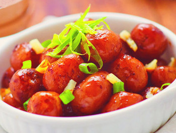 此品外脆内软,香甜可口,但需乘热吃,否则会变硬。