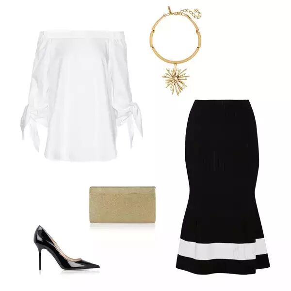 一字肩的设计露出肩部、锁骨,女人的性感娇俏一展无余,如果想要在项链的搭配上有亮点,可以尝试搭配带有设计感缀饰的短项链,不仅避免单调,还能将脖颈曲线修饰得更纤细柔美。