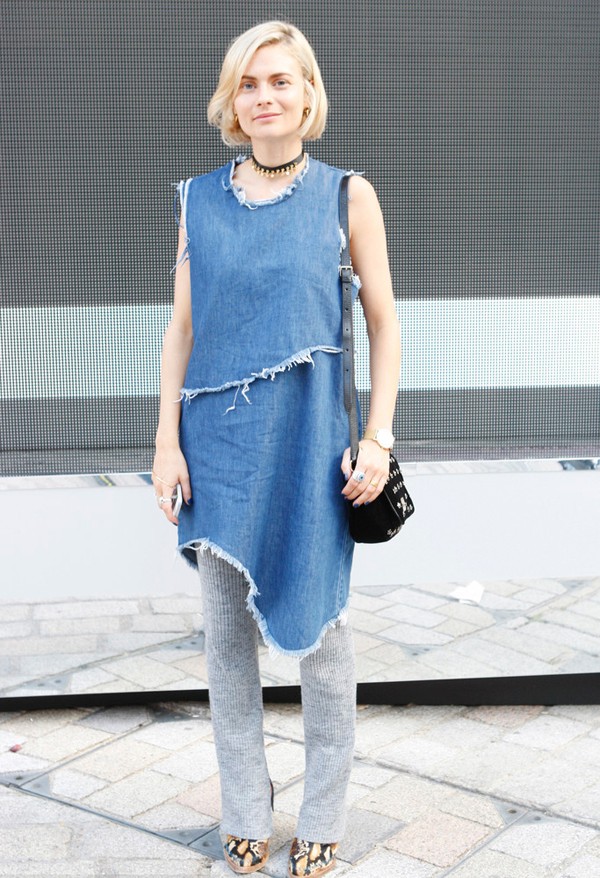 牛仔连衣裙搭配点睛项圈可以增添优雅的感觉,不会显得服装过于休闲。