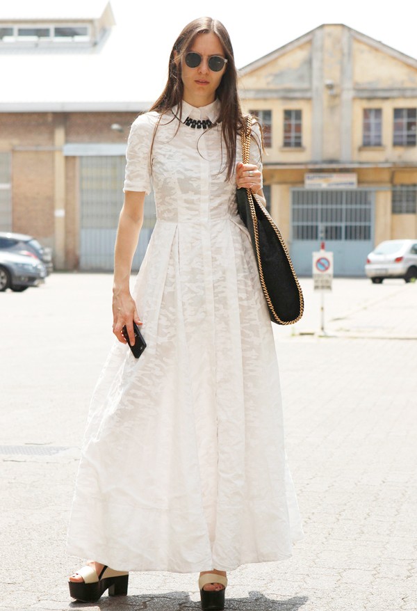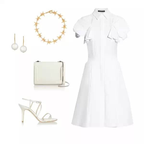 衬衫式的小翻领简洁干练,圆环状短项链精美俏丽,两者搭配相得益彰。就像男士衬衫系上领结立刻变得精致起来,圆环形的短项链也可以让你的衬衫拥有精致女人味。
