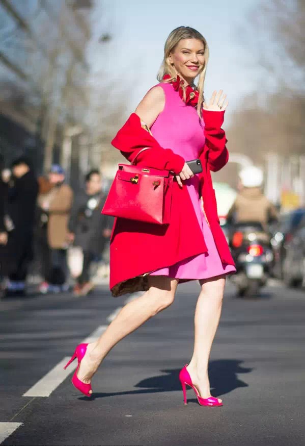 在颜色上可以选择跳脱的撞色,与时装搭配相得益彰。