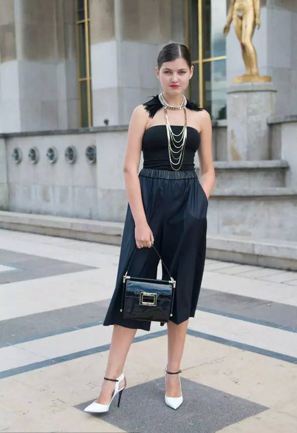 抹胸时装在项链选择上可以大胆选用长短叠戴的方式,填补颈部留白。