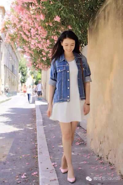 白色无袖休闲连衣裙,可爱活泼的裙装,穿在身上就很有少女系味道,搭配牛仔外套穿,春季最流行装扮,出去踏青或是郊游都是不错的选择,踩着浅粉色高跟鞋,温柔清新