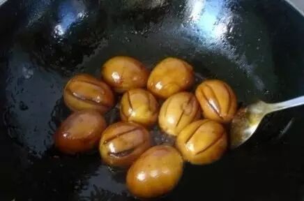 7、比外边卖的卤蛋更好吃:鸡蛋加水煮熟;剥壳后加入啤酒和白糖、酱油以及盐一起煮;煮干即可,想鸡蛋更入味,可以在鸡蛋上划几个口子。
