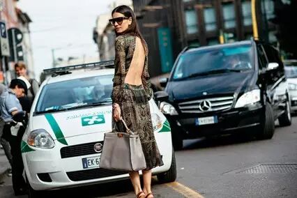▼连衣裙当然是约会的不二之选,Leila Yavari 的露背印花裙太美