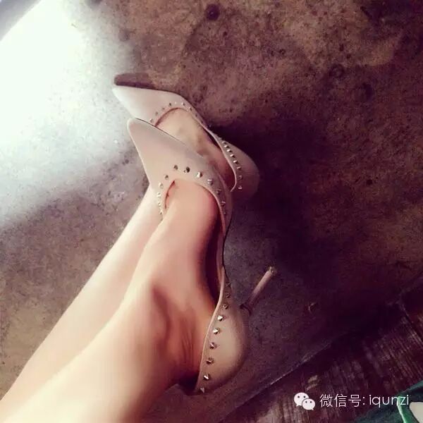 15、尖头铆钉高跟鞋绒面细跟气质单鞋。