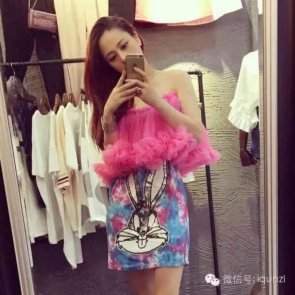 5、兔露肩一字领短袖T恤连衣裙。这是一款连衣裙哦~只不过是拼接款~