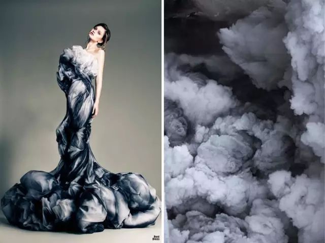 结果这种异样的组合排在一起就像把两个不相关的成功的结合在一起。事实上,在很早前就已经有这类的将装饰服装和自然结合起来的案例。